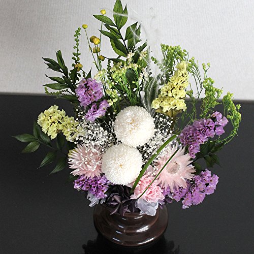fleurcoco オリジナル お供えプリザーブドフラワー 紫苑 ホワイト&パープル お仏壇