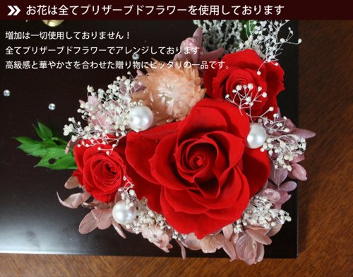 - ケース入りですから、埃や湿気からお花を守ります。記念となる商品ですから、新築・開店・開院・引越し・誕生日・定年退職祝いなど、いろいろなシーンにご利用ください。