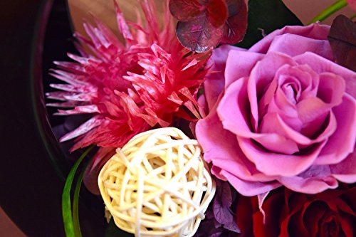 - ・使用花材:プリザーブドフラワー・・・バラ・アジサイ・ソフトライスフラワー・シルバーデージー・グリーン。アーチフィシャルフラワー・・ユーカリ。その他・・・・ラタンボール