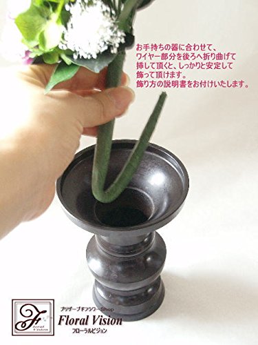 - ■お水不要枯れないプリザーブドフラワー仏花、造花不使用です。■ギフトにも安心!解りやすくて見やすい取り扱い説明&飾り方説明書が付属します(写真6)■お手持ちの器に飾っていただく花束タイプ、器は商品には含まれません.■単品商品となります。1対でご使用になる場合は数量を2個にしてカートにお入れ頂きますと、左右対称になるようにお仕上げします。