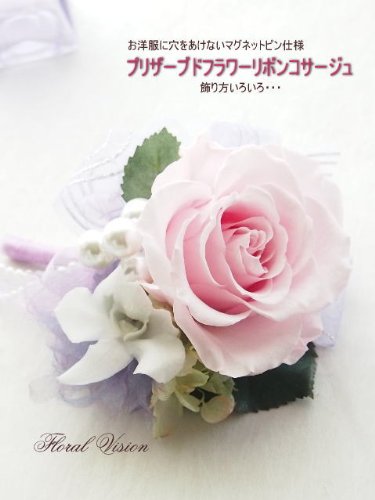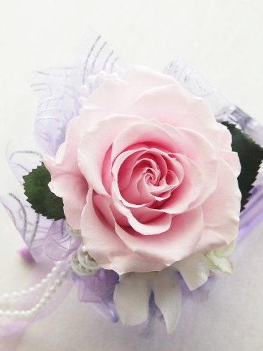 - お水不要!枯れないお花プリザーブドフラワーのコサージュです。淡いピンクのローズとホワイトのデンファレ、オーガンジーのリボンやパールなどをあしらって、華やかで上品なイメージのコサージュに仕上げました。黒・白・ベージュ・グレーどんなお色の服にも似合うカラーコーディネート!お洋服を傷めない強力マグネットピンを採用。
