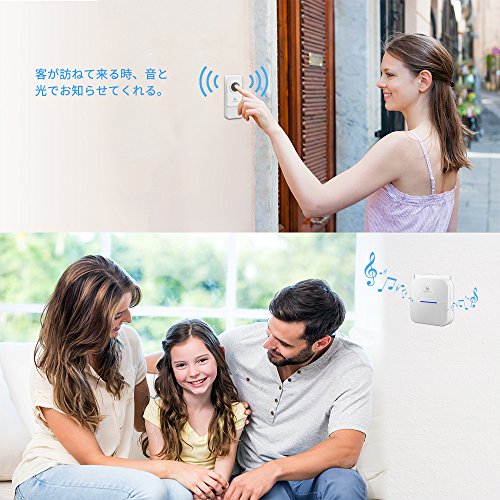 - ♥【300m無線作動範囲】♥高感度受信機を採用しており、最大300メートルの電波発送距離のワイヤレスチャイムです。障害物のある所(例えば建物や壁など)では最大150メートルの範囲で働きます。受信機に正面のLEDが青色に点灯しながら呼び出し音楽が鳴り、音と光で知らせるドアベルです。耳が遠い人にも心配ありません。