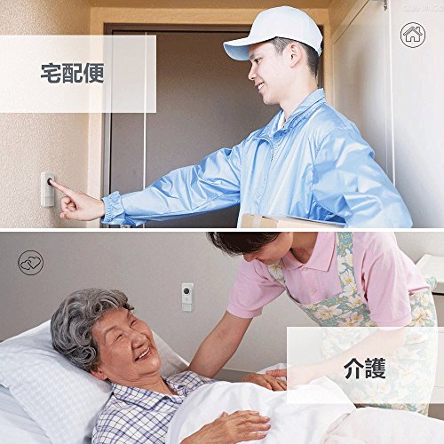 - ♥【こんな所にオススメ&増設可能】♥玄関チャイム、来客チャイム、ナースコール、介護現場やレストラン、倉庫などでの呼び出しチャイムとして配線無しでラクラク設置できるワイヤレスチャイムです。自宅、事務所、工場、介護現場、店舗、レストラン、居酒屋などにも最適です。、送信機や受信機は、何台でも増設可能です。