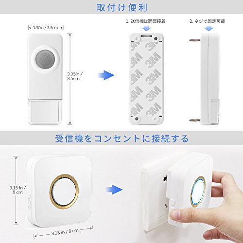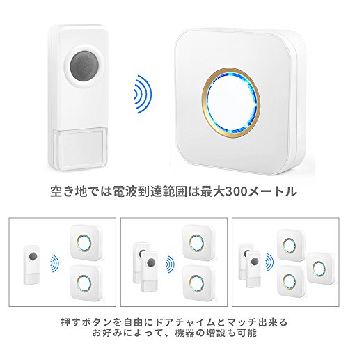 - ♥【信号安定&IP55防水仕様】ワイヤレスチャイムの送信機は固定されるIDコードがあり、電波の妨害や混信などの心配はありません。。国際防水規格IP55の防滴仕様防水・防塵性能が優れており、屋外や風呂場でも使用でき、雨の日でも心配ありません。