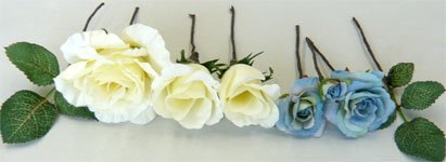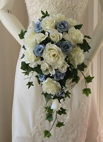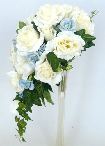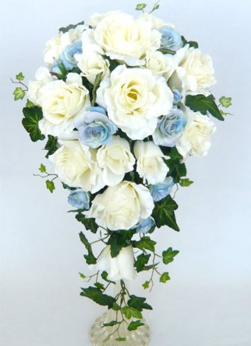 アートフラワー(造花)ブーケ/ホワイトローズ キャスケードブーケ ブルー入り ヘッド花付き ウエディングブーケ