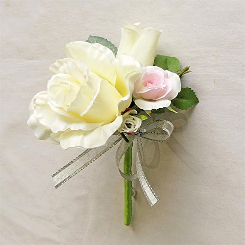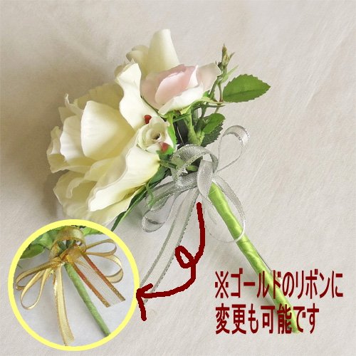 F-grip ウェディング ブーケ アートフラワー バラ プレゼント (ホワイト・ピンク)
