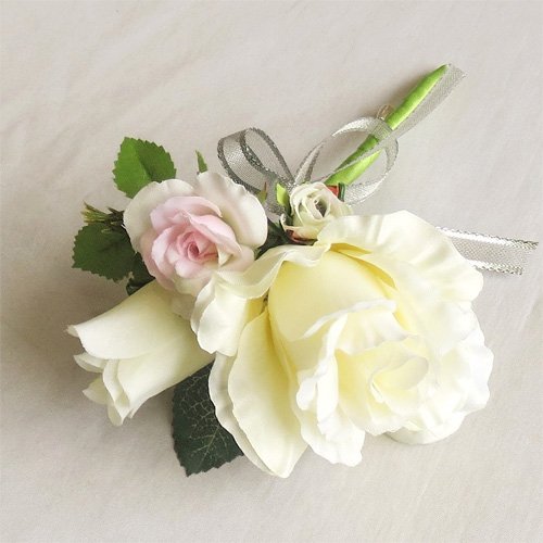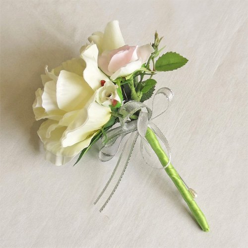 ウエディングブーケ/ブライダル/造花 ブートニア ホワイト&ブルー