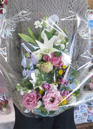 お供えの花/ユリが入ったお供え花(ピンクのお花)