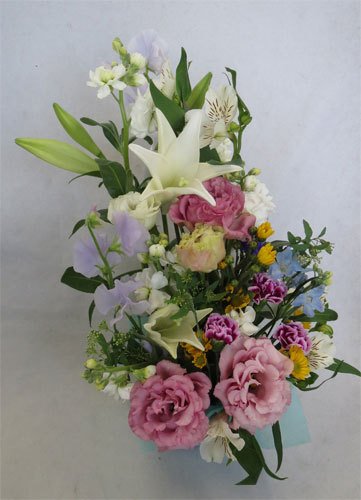 - 高さ:約48cm/直径約 25cm 【花材:ユリ トルコキキョウ 等】