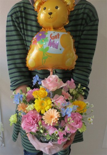 バルーンフラワー/豪華なお花のベアー(GET WELL)