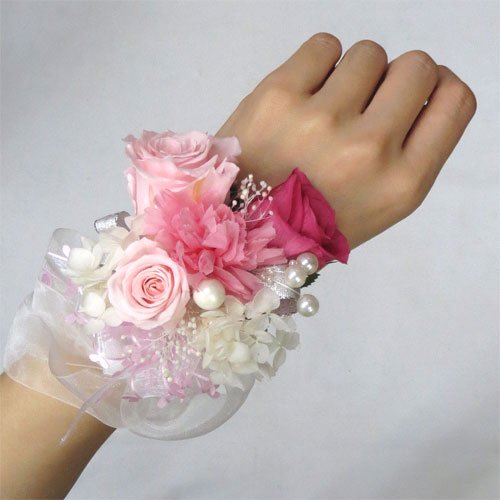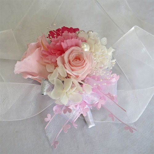 ウエディングブーケ/ブライダル/プリザーブドフラワー リスレット リストブーケ ピンク M