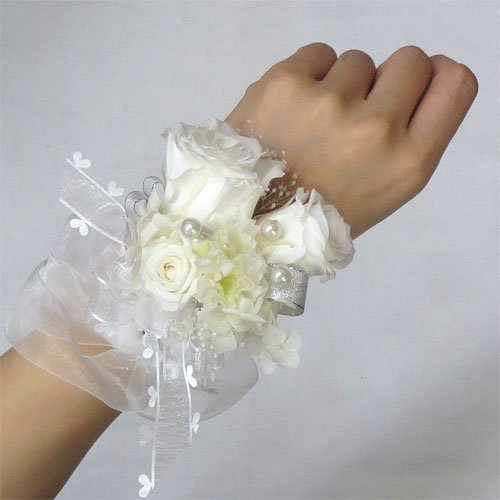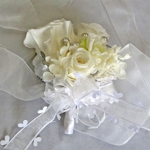 ウエディングブーケ/ブライダル/プリザーブドフラワー リスレット リストブーケ 白 M