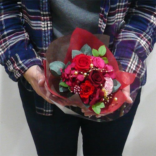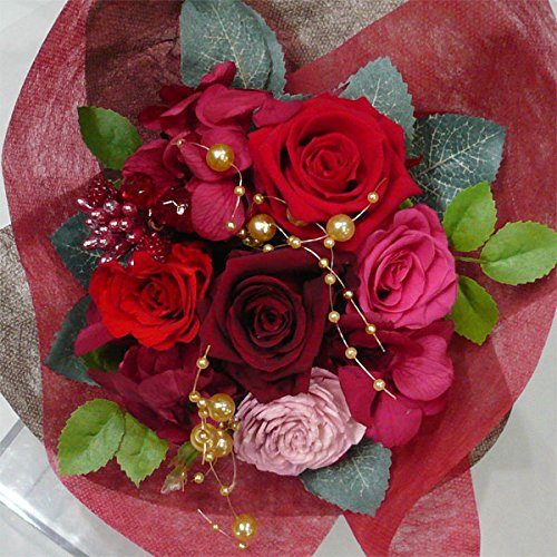 - 長さ:約22cm 幅:約13cm(花束タイプ)花材:バラ/プリザーブドフラワー 葉・パール/アート