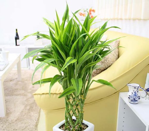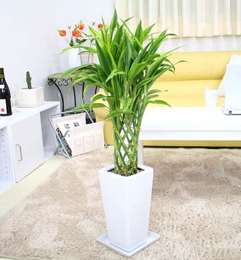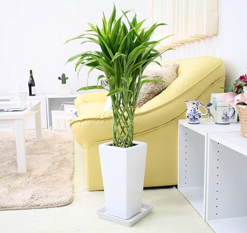 観葉植物 幸せの開運竹 6号 スクエアホワイト陶器鉢+陶器鉢皿付き
