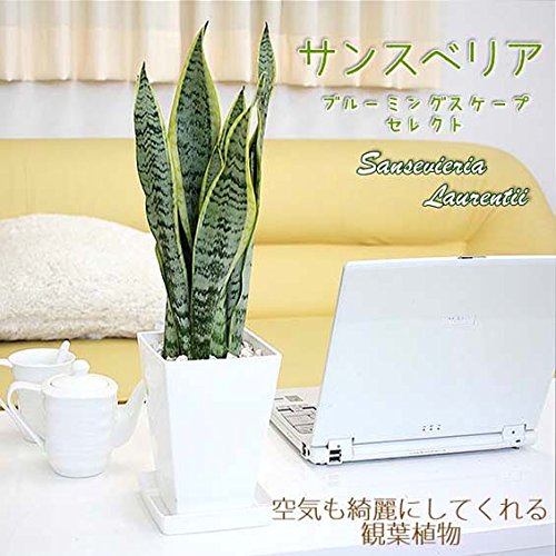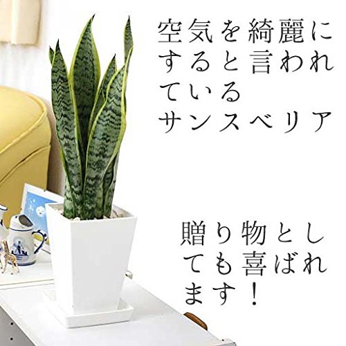 - どんな場所にも素敵にマッチするサンスベリア。素敵なスクエア形のホワイトプラスチック鉢植えです。スタイリッシュでスマートな雰囲気と葉っぱの独特な模様もGood!比較的、お手入れも簡単なので寒さなどに注意すると管理も容易です。