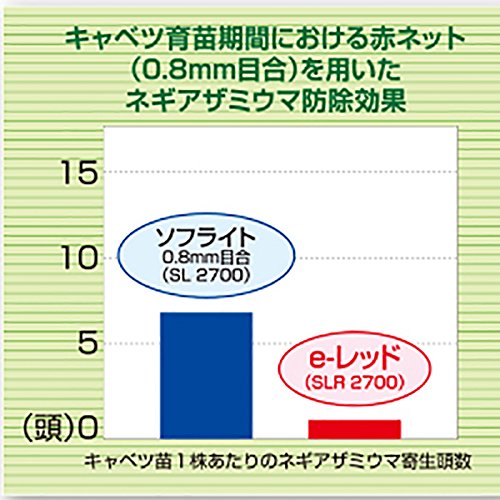 赤色のPE製細糸(色彩作用)で微細害虫の侵入を大幅に軽減