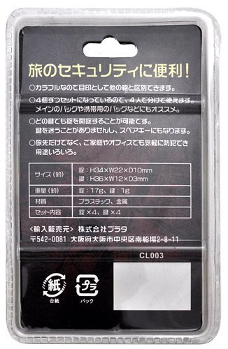 PLATA ( プラタ )【 イエロー 】 カラー ロック ( 南京錠 4個 / キー4個 ) CL003YL
