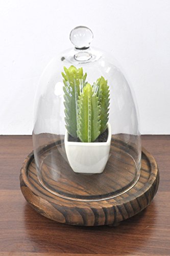 PLATA ディスプレイ 用 ミニ サボテン 【 C + ガラス蓋 木皿 セット 】 人工 観葉植物 グリーンポット YWX135--C-YWX132