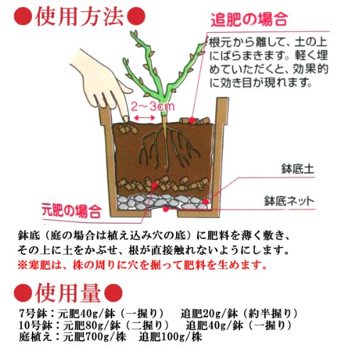 肥料成分 チッソ(N)6 : リンサン(P)8 : カリ(K)5