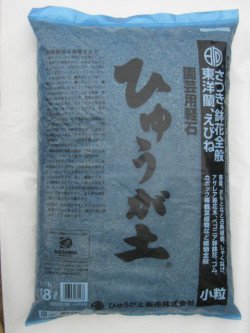 九州の軽石「ひゅうが土」九州、宮崎県地方から産出される軽石で、蘭、万年青、観葉植物、盆栽等に他の用土と混ぜて使います。「ぼら土」とも言われます。