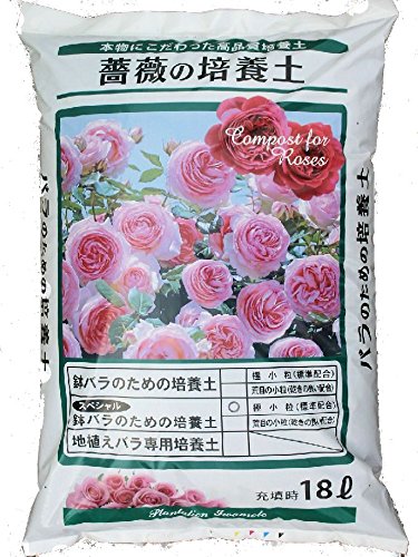 【プロ仕様の本格的薔薇の土】 鉢バラ用、「本格的オリジナル培養土」18リットル/3袋セットです! 茨城産の「硬質赤玉土」ベースの培養土ですから、型崩れが少なく「水はけ・水持ち」が良く厳寒期に凍って排水が悪くなるようなことはありません。 ピーキャットフラワーズさんが(千葉県)鉢植え商品に実際に使用しているものと同じ製品です。 用土の配合、厳選原料の選別など、ピーキャットフラワーズさんのご指導によるもので、微生物の働きが活発で、排水性保水性とも良好な、実績ある製品ですから安心してご使用頂けます。 ■6号鉢で約3,5リットル・10号鉢で13~14リットルの用土が必要です。 ■使用原料■ ・茨城産硬質赤玉土(型崩れが少ない) ・完熟堆肥(微生物いっぱい) ・クンタン(殺菌作用・イオン交換作用) ・完熟馬糞(黒点病胞子を破壊する作用) ・ニームケーキパウダー(虫などの忌避効果)