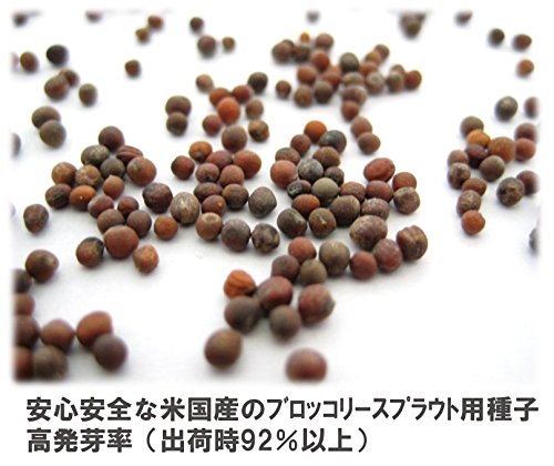 - 米国産の種子消毒をしていない安全・高発芽率なブロッコリースプラウト用種子です。栽培したスプラウトは健康成分スルフォラファンを高濃度含有します。