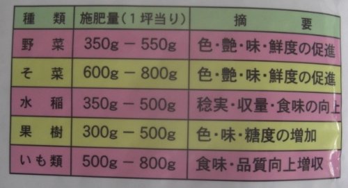 ●【用途】園芸用肥料。●【機能・特徴】動植物性有機質を主体としていますので土壌に大変効果的で、微生物の繁殖を促進し地力を増進させるため、健康な野菜作りが楽しめます。長期間肥効が続き、季節・作物に関係無くご使用頂けます。【注意事項】本品は食品ではありませんので、お子様・ペットが口に入れたりしないよう手の届かない所に保管ください。空き袋を頭からかぶったりしないよう注意してください。保管は、密封し直射日光を避け、乾燥したところに保管して下さい。