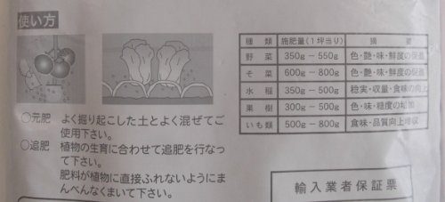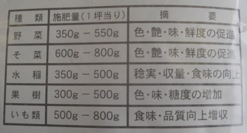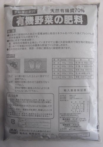 ●【用途】園芸用肥料。●【機能・特徴】動植物性有機質を主体としていますので土壌に大変効果的で、微生物の繁殖を促進し地力を増進させるため、健康な野菜作りが楽しめます。長期間肥効が続き、季節・作物に関係無くご使用頂けます。【注意事項】本品は食品ではありませんので、お子様・ペットが口に入れたりしないよう手の届かない所に保管ください。空き袋を頭からかぶったりしないよう注意してください。保管は、密封し直射日光を避け、乾燥したところに保管して下さい。