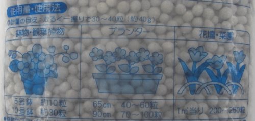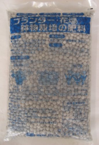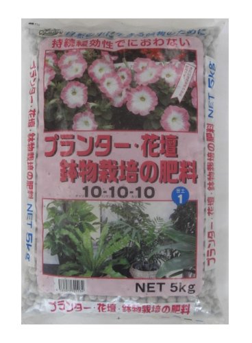 元肥・追肥のスタンダードな緩効性化成肥料です。植え付け直後から、成長に合わせてゆっくりと効きます。無臭で清潔、根に触れても安心の肥料です。有効成分比率チッソ10:リンサン10:カリ101袋5kg入りです。使用量の目安:<元肥>3.3平米あたり 120~150g5号(直径15cm)鉢 15~20g65cmプランター 40~50g<追肥>3.3平米あたり 80~120g5号(直径15cm)鉢 10~15g65cmプランター 30~40g