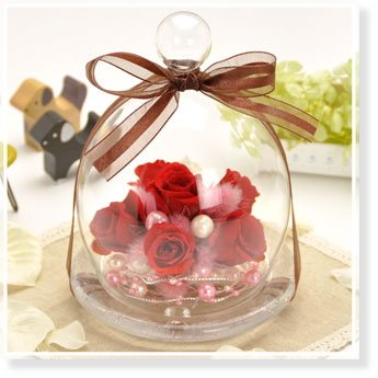 花花 プリザーブドフラワー アンジーの庭 ガラスドーム 入り ( バラ ) 枯れない お花 お祝い プチギフト プレゼント 【 メッセージカード / ラッピング 無料 】( ストロベリー レッド )