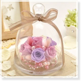 花花 プリザーブドフラワー アンジーの庭 ガラスドーム 入り ( バラ ) 枯れない お花 お祝い プチギフト プレゼント 【 メッセージカード / ラッピング 無料 】( パウダー パープル )