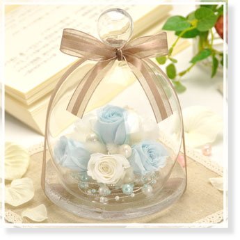 プリザーブドフラワー 花花 アンジーの庭 バラ (ガラスドーム 入り) お祝い プチギフト プレゼント ギフト (アリス ブルー)