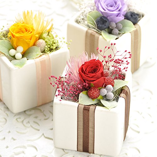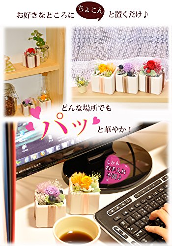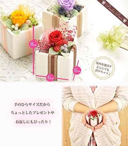 - ちょこんと置くだけで、その場が華やかになります。ショートケーキみたいな、ぷちサイズプリザーブドフラワー。生花に特殊加工を施し、長期保存を可能にしました。