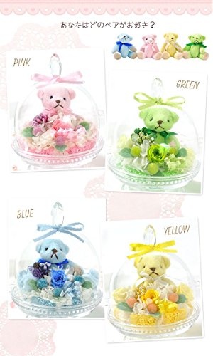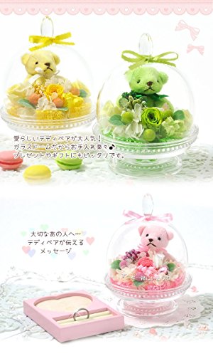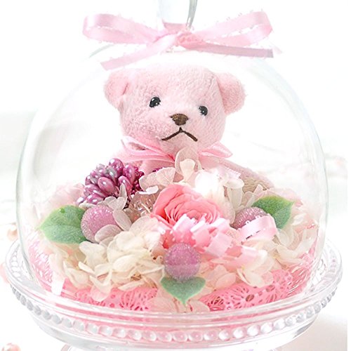 プリザーブドフラワー 花花 ぷち ガラスドーム テディベア (バラ 3輪) 枯れないお花 お祝い プチギフト プレゼント (オリジナルメッセージカード ラッピング 無料対応) ピンク