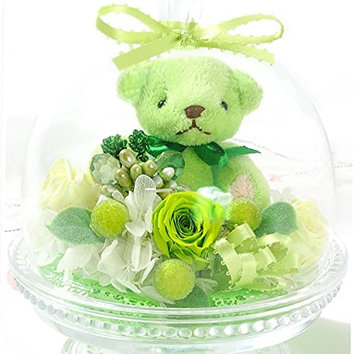 プリザーブドフラワー 花花 ぷち ガラスドーム テディベア (バラ 3輪) 枯れないお花 お祝い プチギフト プレゼント (オリジナルメッセージカード ラッピング 無料対応) グリーン