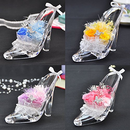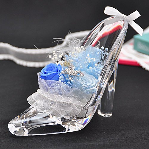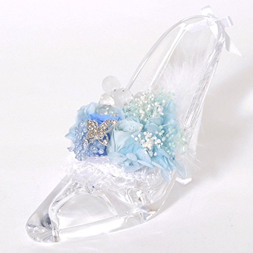プリザーブドフラワー 花花 シンデレラ ガラスの靴 (専用ケース付) プレゼント メッセージカード付 (ロイヤル ブルー)
