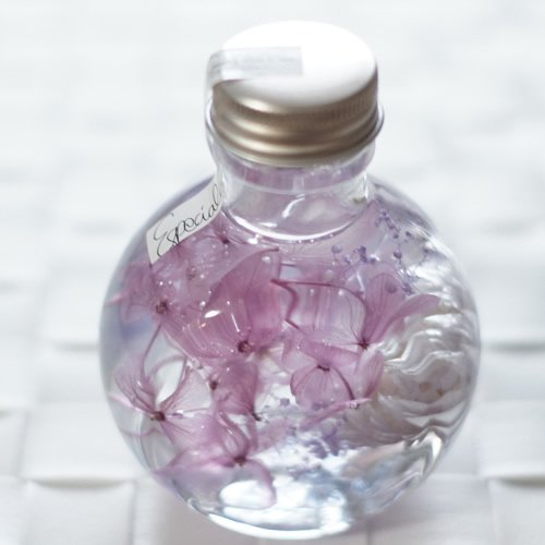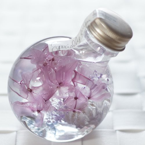 ハーバリウムとは、「植物標本」という意味ですが、その美しさから、現在ではインテリアとしても親しまれています。 本品は、観賞用の植物標本です。 ハーバリウムをお楽しみいただくために注意していただきたいこと ふたは開けないでください。 誤飲にご注意ください。 直射日光のあたるところや火気の近くには飾らないでください。 (ストーブ・ガスコンロ等) 自然素材を使用しているため、年月とともにゆるやかに色が薄くなっていきますことをご了承ください。 また、花材はオイルの中で動くため、画像と違う場所に移動している場合があります。 オイルを処分する場合は、流しなどに流さず、新聞紙などで 吸い取って処分してください。