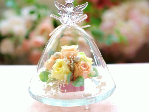 プリザーブドフラワーIPFA プリザーブドフラワー ギフト 『ガラスドーム エンジェル (ピーチ&イエロー)』