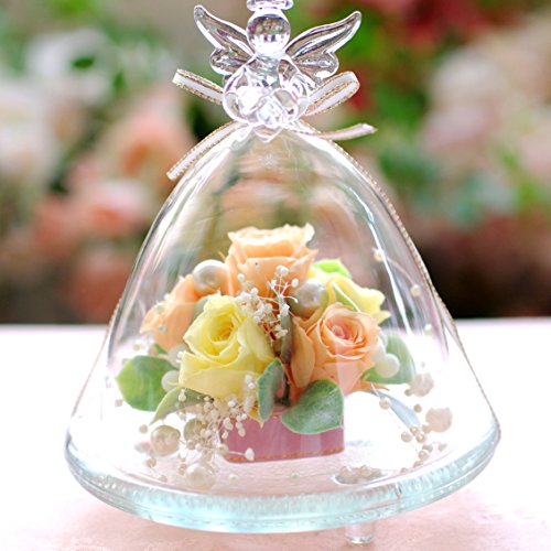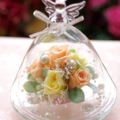 当アレンジは透明のガラスドームの中にプリザーブドローズが6輪、アレンジされた商品です。ガラスドーム先端のエンジェルが特徴のこのアレンジは、楽天市場でも楽天ランキング1位を度々取得している大人気アレンジで、様々なご用途の贈り物にご利用いただいております。お花をガラスドームが守るため、ホコリを被る心配がなく、いつまでも綺麗に飾ってお楽しみいただけます。