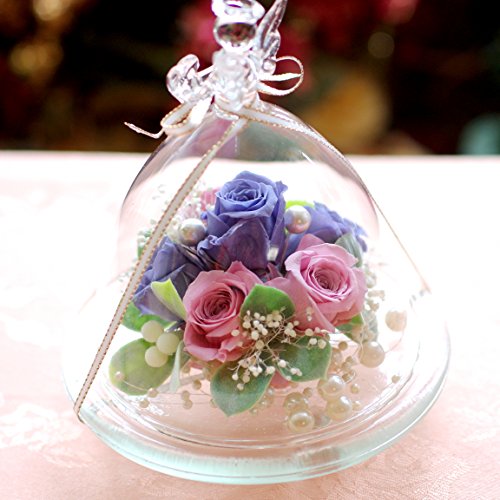 当アレンジは透明のガラスドームの中にプリザーブドローズが6輪、アレンジされた商品です。ガラスドーム先端のエンジェルが特徴のこのアレンジは、楽天市場でも楽天ランキング1位を度々取得している大人気アレンジで、様々なご用途の贈り物にご利用いただいております。お花をガラスドームが守るため、ホコリを被る心配がなく、いつまでも綺麗に飾ってお楽しみいただけます。