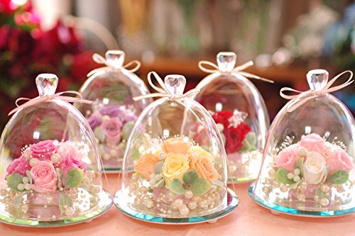 当アレンジは透明のガラスドームの中にプリザーブドローズが6輪、アレンジされた商品です。ダイヤ型のガラスドーム先端が特徴のこのアレンジは、楽天市場でも楽天ランキング1位を度々取得している大人気アレンジで、様々なご用途の贈り物にご利用いただいております。お花をガラスドームが守るため、ホコリを被る心配がなく、いつまでも綺麗に飾ってお楽しみいただけます。