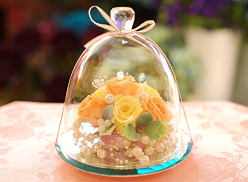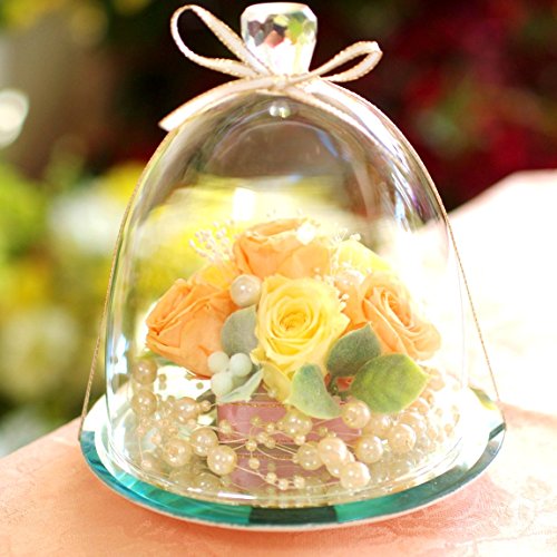 プリザーブドフラワーIPFA プリザーブドフラワー ギフト 『ガラスドーム エレガンス (ピーチ&イエロー)』