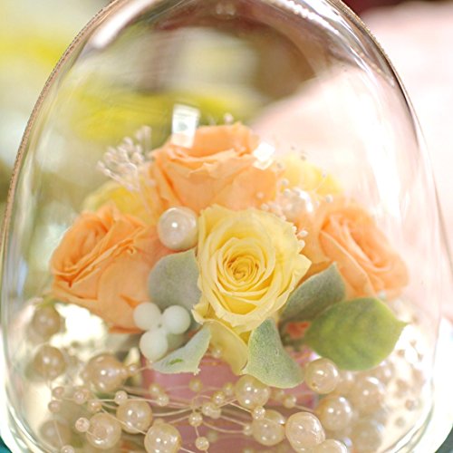 - ■サイズ:14×12×12(cm) ■素材:プリザーブドローズ、かすみ草、アートリーフ、パールピック、ガーランドパール、リボン、ガラスドーム