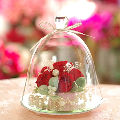 - ■サイズ:14×12×12(cm) ■素材:プリザーブドローズ、かすみ草、アートリーフ、パールピック、ガーランドパール、リボン、ガラスドーム