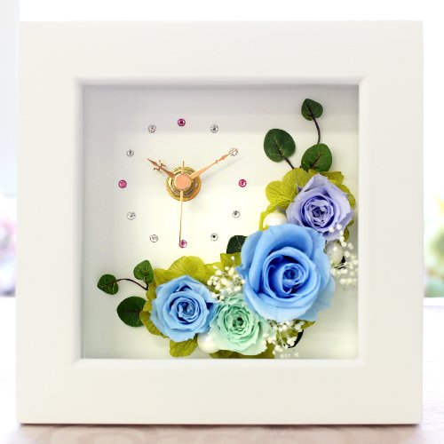 プリザーブドフラワーIPFA【フレームの時計】ブルー