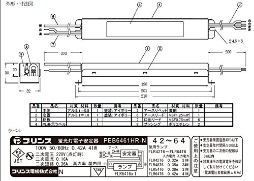 プリンス 電子安定器 スーパーライン用 FLR42~64T6用 脚付きタイプ PEB6461HR-N