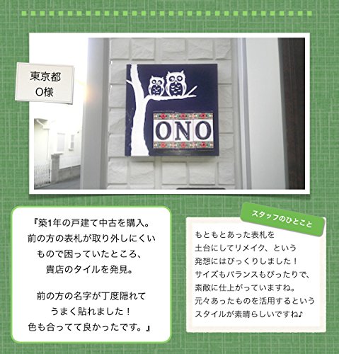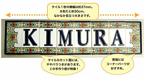 モザイクのデザインと色合いが鮮やかな、スペイン製のタイル表札。 アルファベットを並べて壁に貼り付けたり、枠にはめ込んだり、アイディア次第でいろいろな表札ができます。ルームプレートやペットハウス、マンション表札としてもご利用いただけます。 手作りキットが好きな方にもおすすめです。