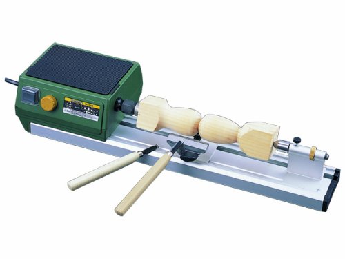 ●【用途】木工専用の小型旋盤。【特徴・機能】木工専用の小型旋盤です。加工可能寸法:丸材50mm径、角材40mm×40mm、長さ220mmまで。付属品:コレットチャック6種類(2/3/4/6/8/10mm用)/ドライブセンター/回転センターアタッチメント/専用ナイフ3種/防塵メガネ。【注意事項】加工材の寸法は取り付け寸法によって異なります。
