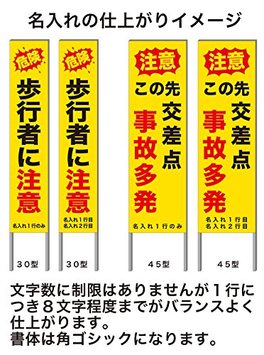 ●反射素材の特性により夜間でも抜群の認識力を発揮します。●名入れ対応なので、ご希望の自治体名や団体名などが入れられます。●電柱とほぼ同じ300ミリ幅なので、通行の妨げになりません。●基板とスチール枠は強力両面テープとビス(10カ所)でしっかり固定してあります。●総厚は約20ミリと、収納時もかさばりません。●針金(※別途ご用意下さい)等で電柱やフェンスに簡単に固定できます。●この商品は受注生産品です。●看板の基材となる鉄枠や鉄板には弊社へ入荷した時点で多少のスレやキズが生じている場合があります。尚、これにより反射看板の性能や用途を損なう事はありませんので多少のスレやキズは仕様とさせて頂いております。予めご了承下さい。●大変申し訳ありませんが、この商品は配送業者が定める配達不可地区(離島、沖縄県、配送車両の通行制限のある地域)、配達不可時期(主に北日本の冬期)においてはご注文頂けません。●配達の可否地区・時期について、ご不明点がありましたらプロテックへ直接お問い合わせ下さい。