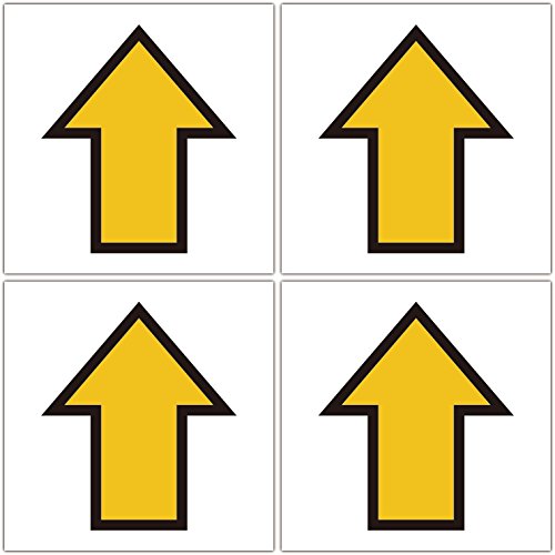 「四角・黄色矢印」 床や路面に直接貼れる 路面表示ステッカー 各100X100mm 4枚組